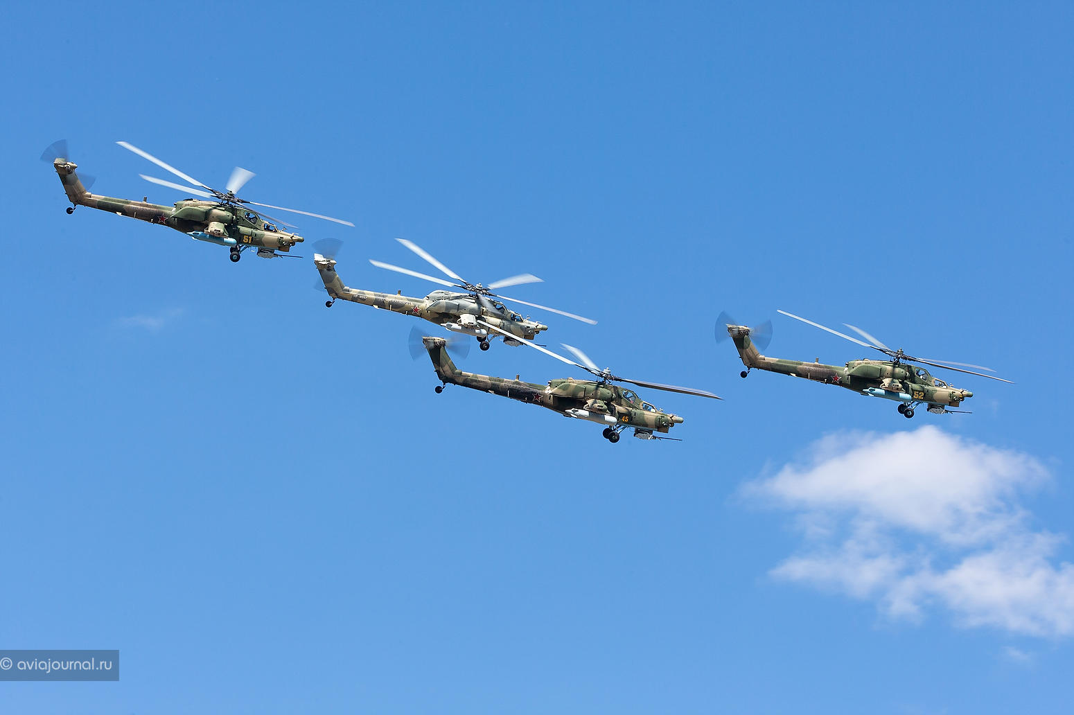 Этот вертолёт, как и всё семейство, обладают исключительными лётными качествами, которые не раз были доказаны в ходе различных специальных операций по линии ВКС России, в том числе в Сирии. Ввиду чего пилотаж на этом вертолёте действительно является высшим, и то, что может показать этот вертолёт всегда запечатлеется в памяти любого зрителя надолго.