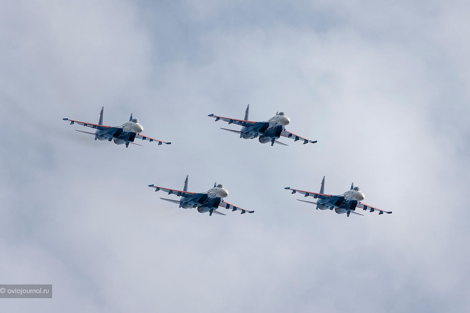 В ходе выполнения воздушной программы лётчики ВКС России отработали комплекс фигур высшего пилотажа в составе звена на самолётах Су-30СМ, включая такие элементы, как боевые развороты и виражи, в том числе на форсажном режиме работы двигателей, групповые бочки и петли Нестерова, синхронные бочки, встречный роспуск, зеркало и многие другие. Групповые полёты «Русских витязей» выполнялись на высотах от 200 до 2000 метров.
